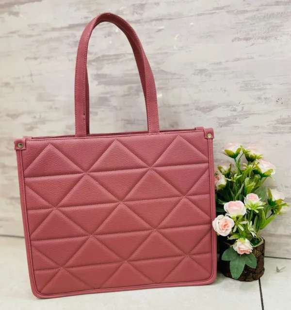 Quilted Pink Tote Bag with Detachable Chain Strap